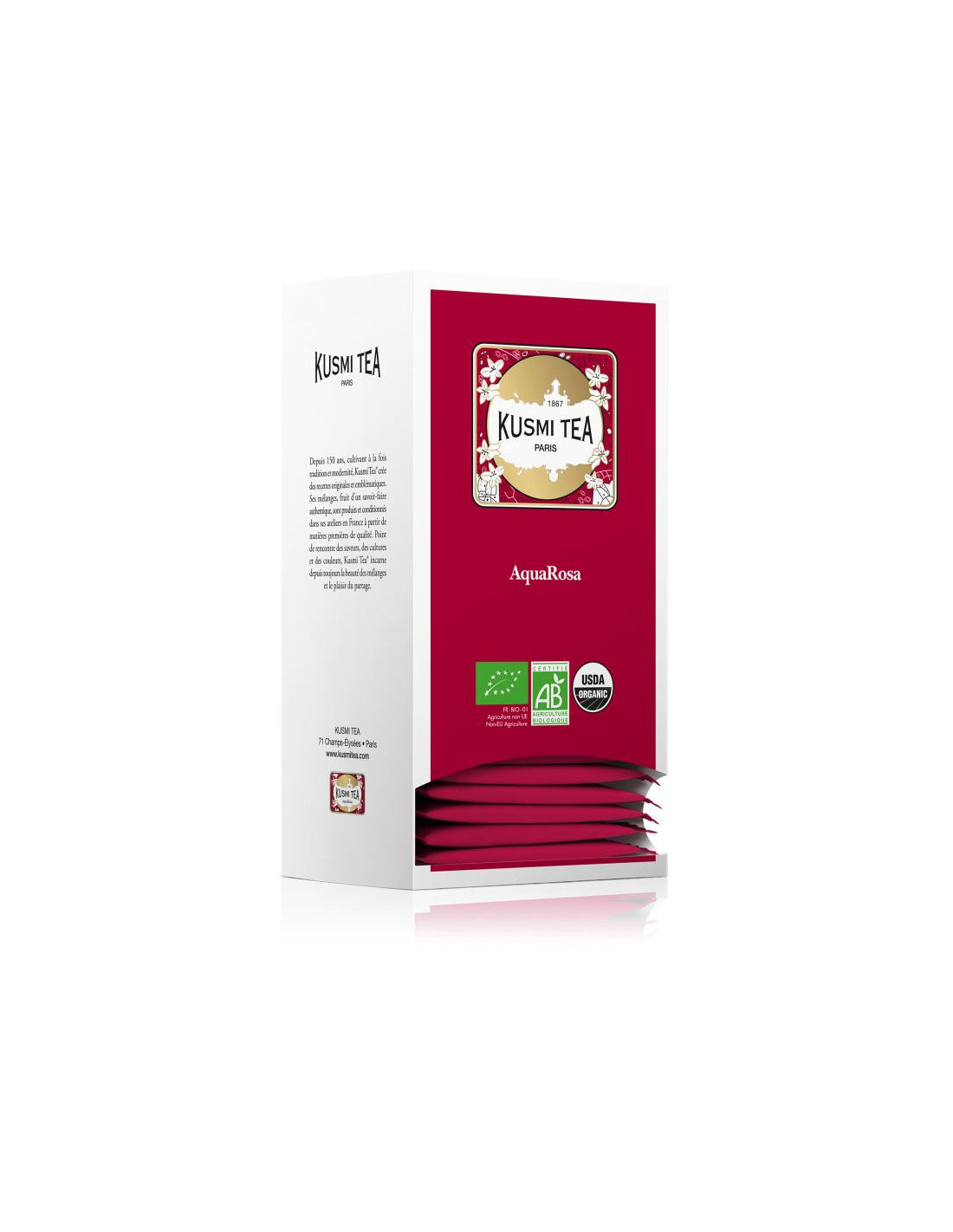 On the one hand, you have hibiscus and its tart notes that will whisk you away in one sip. On the other hand, you have gourmet red fruits, apple and blackberries from the most renowned orchards.